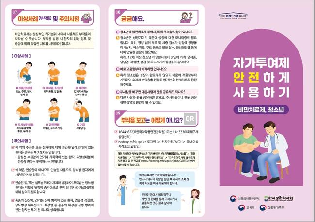 성장이 완전히 이루어지지 않은 청소년은 체중 감소와 위장 부작용으로 인한 탈수, 영양 결핍 등의 위험이 존재하므로, 의사 처방과 약사의 복약 지도를 반드시 따라야 한다는 것이 당국의 설명이다.