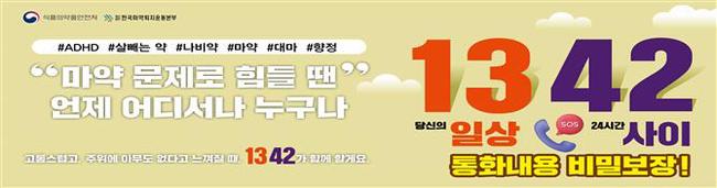 마약 중독은 벗어날 수 있는 질병입니다. 마약류 중독문제 등으로 어려움을 겪고 있거나 주변에 이런 어려움을 겪는 가족・지인이 있다면, 24시간 마약류 전화상담센터 전화 1342에서 전문가의 도움을 받으실 수 있습니다.