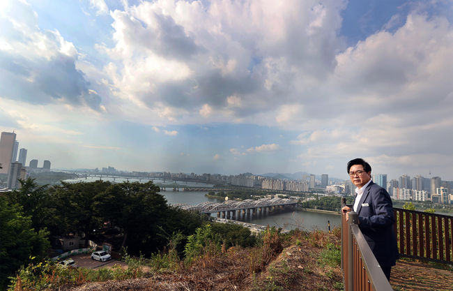 지난 8월, 박일하 동작구청장이 용양봉저정 공원 전망대에서 안전펜스를 점검하고 있다.