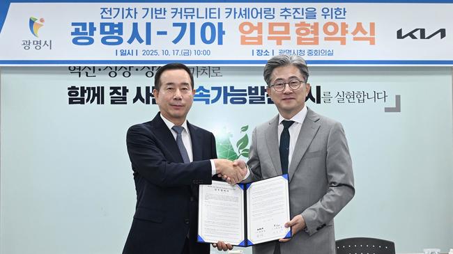 기아는 17일(금) 광명시와 ‘전기차 기반 커뮤니티 카셰어링 추진을 위한 업무협약(MOU)’을 체결했다고 밝혔다.
