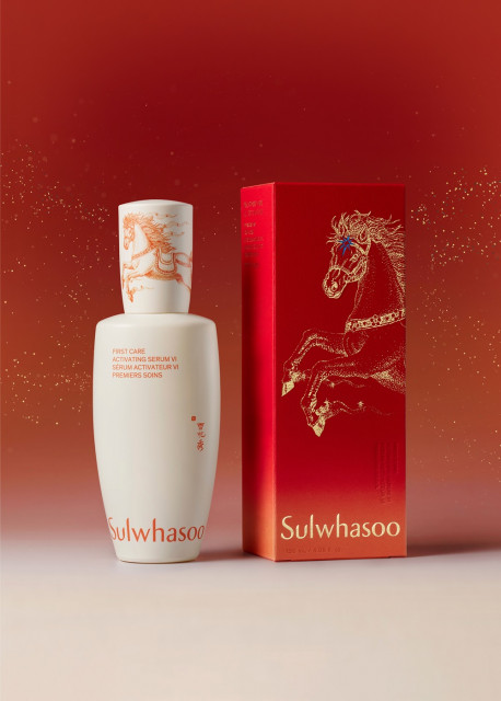 이번 한정판은 어둠을 뚫고 하늘을 달리는 백마의 역동적인 모습을 현대적으로 재해석한 것이 특징이다. 불꽃처럼 흩날리는 갈기와 꼬리, 다리 주변을 감싸는 신비로운 기운은 끊임없는 도전과 모험을 향한 힘찬 에너지를 상징한다. 특히 말 머리 위의 푸른 별은 희망을 의미하며 안장의 매화 문양은 설화수 브랜드 심볼과 연결된다. 주변을 수놓은 별빛과 불꽃 요소는 새해를 맞아 역동적으로 달려 나가는 진취적인 모습을 응원하는 메시지를 담았다.