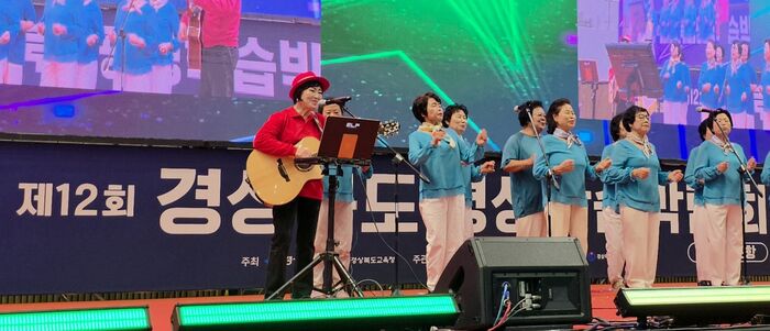 청하 노래교실 중창단 공연모습지난25일(토) 포항 실내 체육관에서 제12회 경북 평생학습 박람회 중 평생학습 화합 한마당이 진행 되었다.포항시 각 동,면에서25개 단체300여명이 참여 한 가운데 행사장은 화려한 열기로 가득했다.